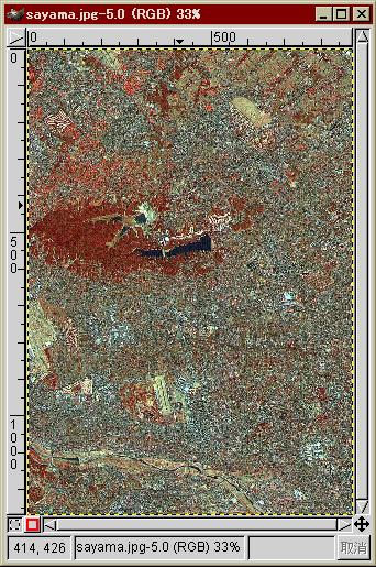 第2回と同じ手順で,先生から指示されたASTER画像を開いてみましょう。下の例は狭山湖周辺の画像です。